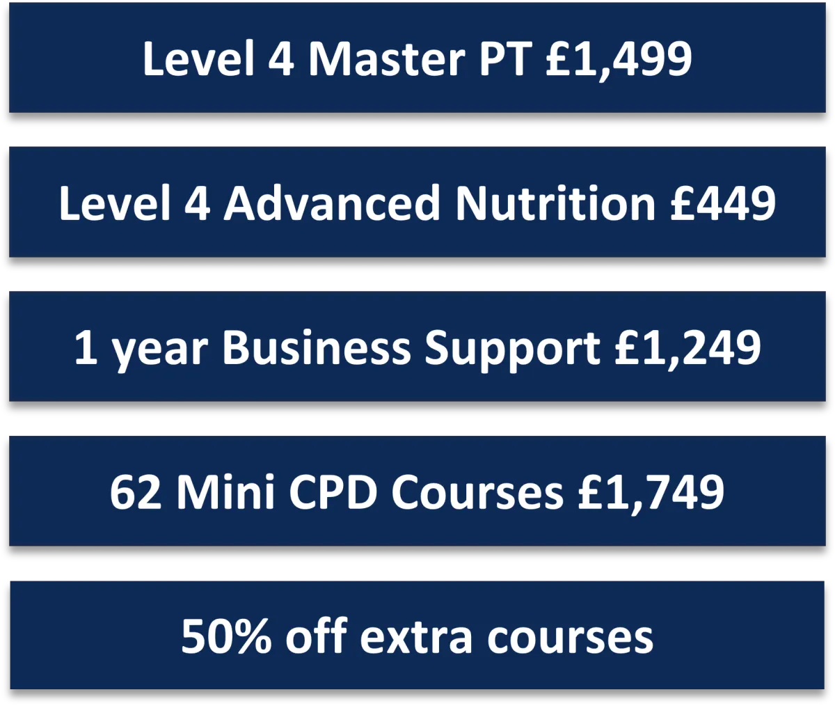 During our Black Friday sale all of our courses come with a level 4 Master Pt qualification worth £1499 - giving you the perfect start to your new career in fitness